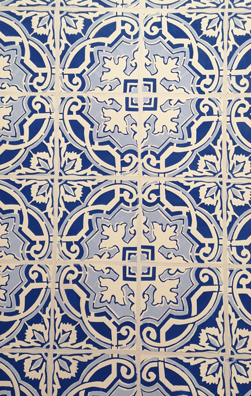 Dessin d’influence mauresque, réalisé sur un pochoir rigide.